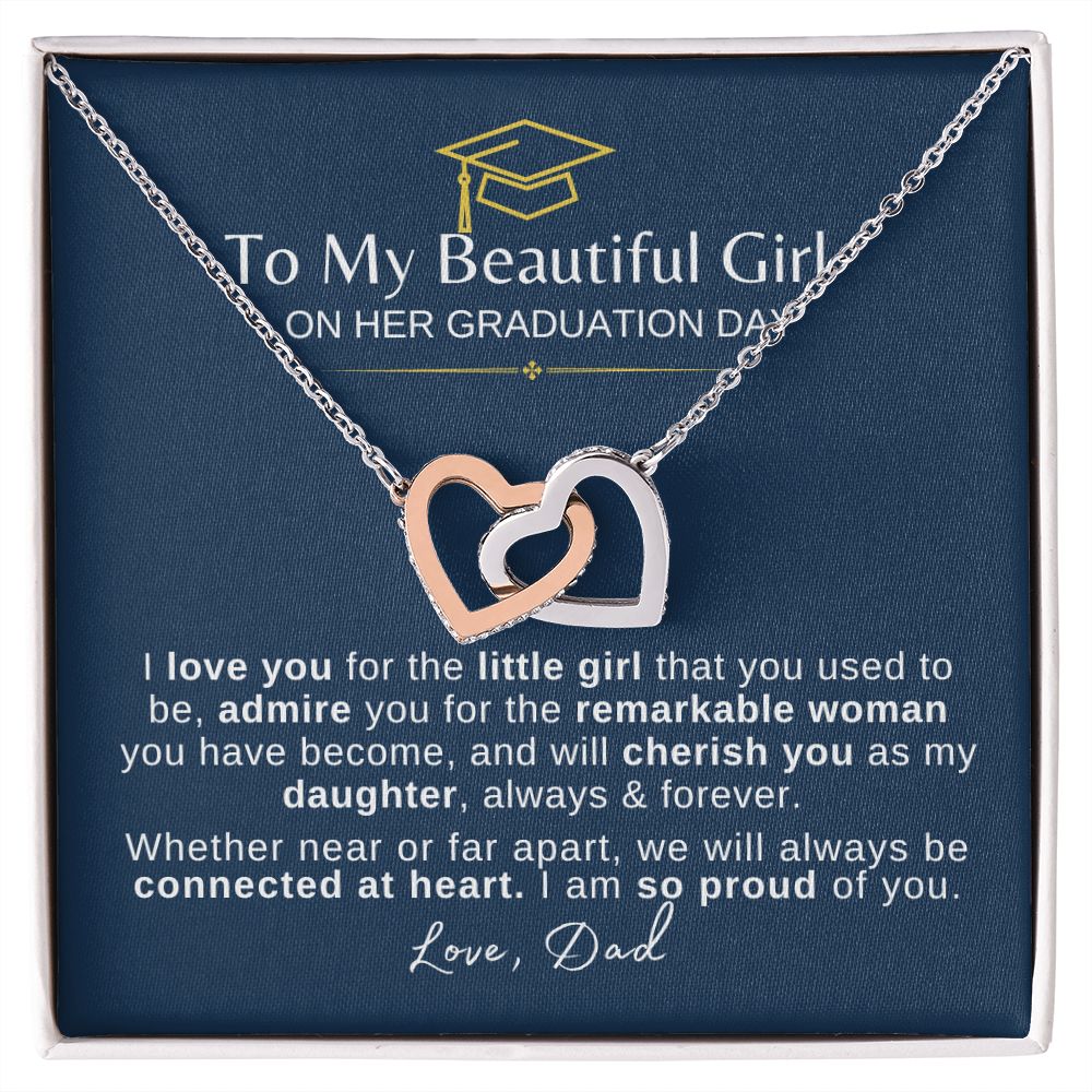 Beautiful Girl Graduation | Connected at Heart From Dad - Interlocking Hearts Necklace