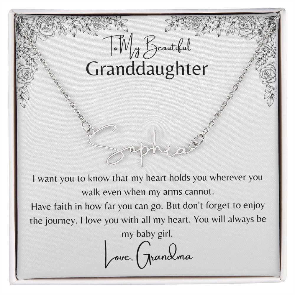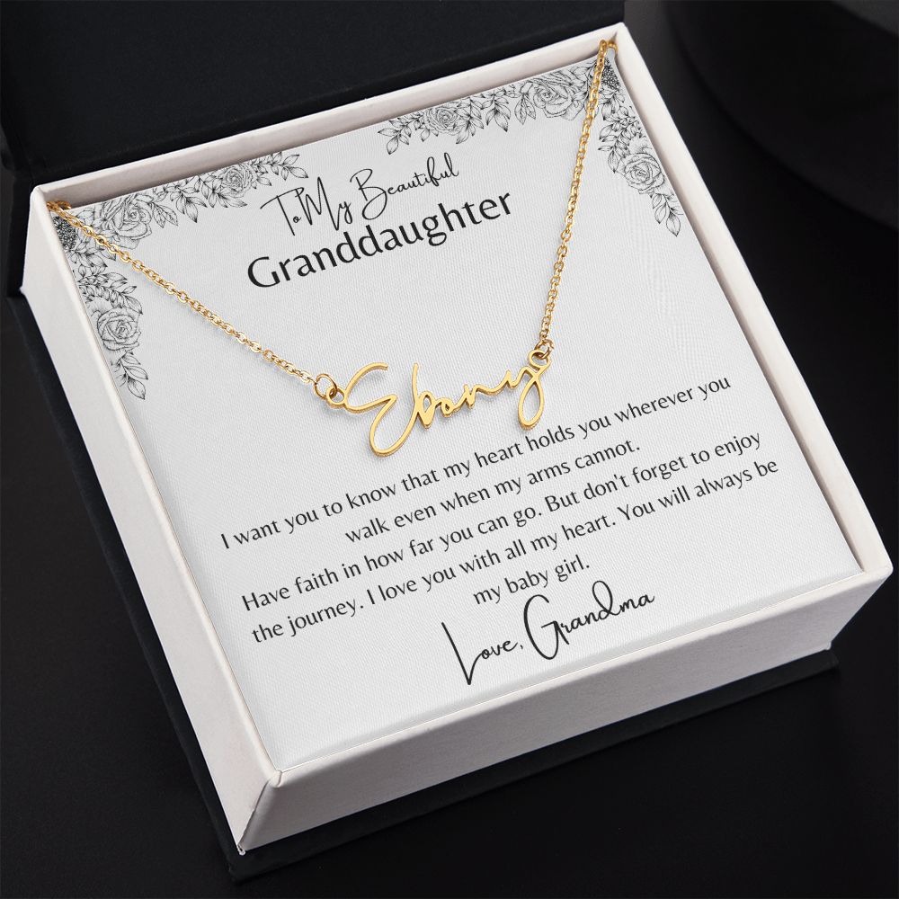 Looking to give your loved one a stylish and personalized gift that will melt their heart? Check out our Signature Style Name Necklace! This adorable custom necklace features a contemporary font that is sure to become a favorite accessory! From a heart-warming holiday present, special occasion gift, or just because, this unique necklace adds a trendy touch to any outfit