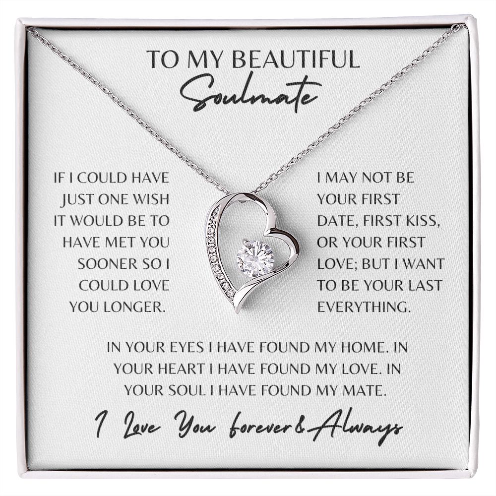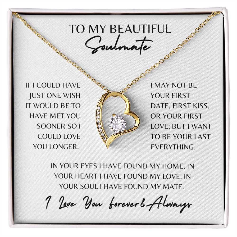 The dazzling Forever Love Necklace is sure to make her heart melt! This necklace features a stunning 6.5mm CZ crystal surrounded by a polished heart pendant embellished with smaller crystals to add extra sparkle and shine. Beautifully crafted with either a white gold or yellow gold finish, be sure to give her a classic gift she can enjoy everyday.