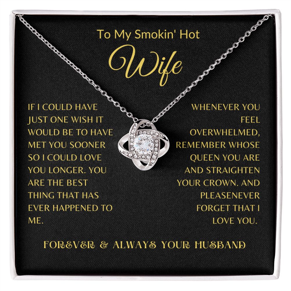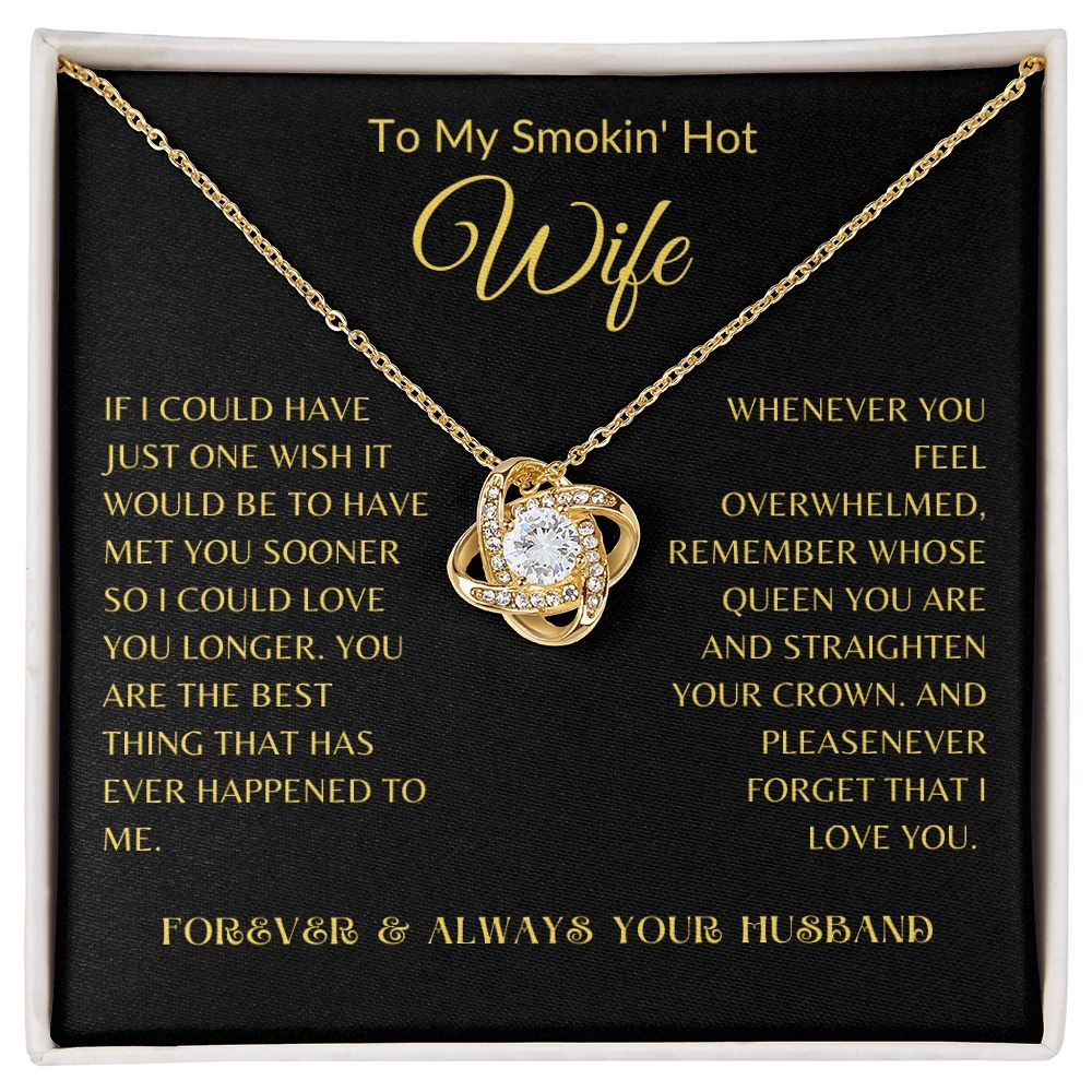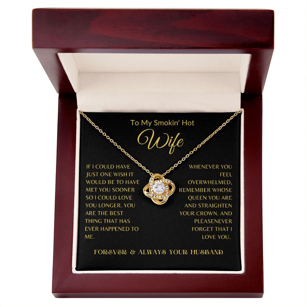 Imagine her reaction receiving this beautiful Love Knot Necklace. Representing an unbreakable bond between two souls, this piece features a beautiful pendant embellished with premium cubic zirconia crystals. Surprise your loved one with this gorgeous gift today!