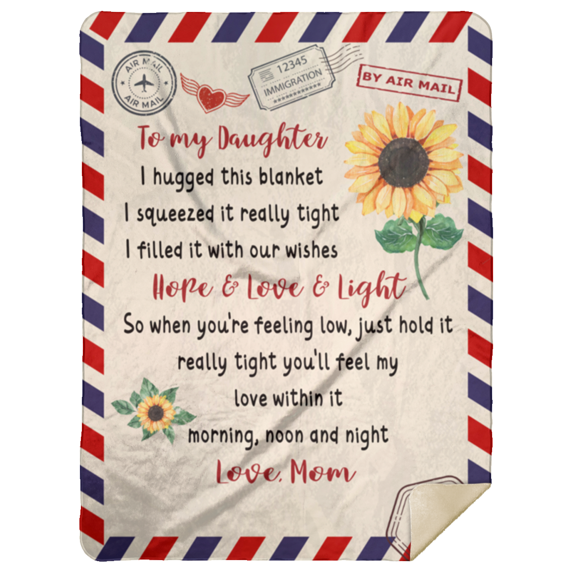 Looking for the perfect heartfelt gift for your daughter? Watch her smile when she receives this beautiful daughter blanket. This blanket will quickly turn into her go-to source of comfort and relaxation - a gift that she will cherish for years to come!