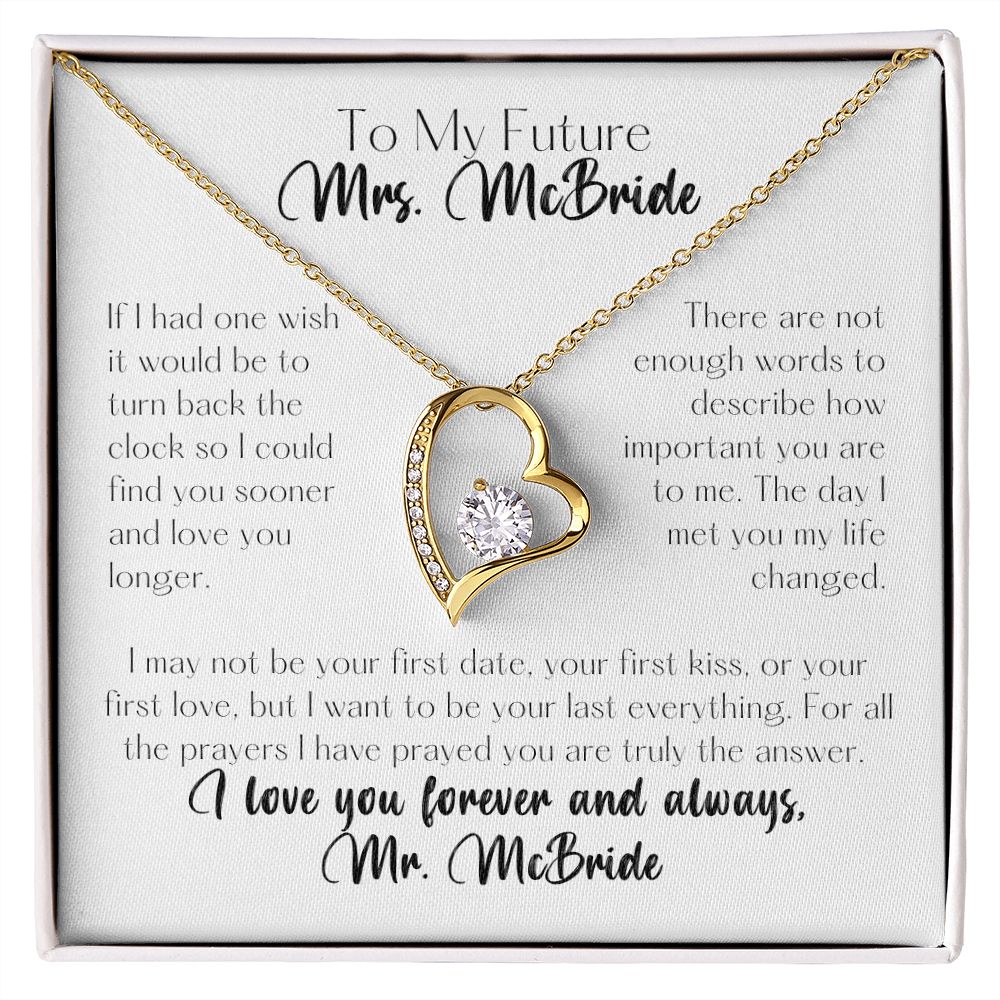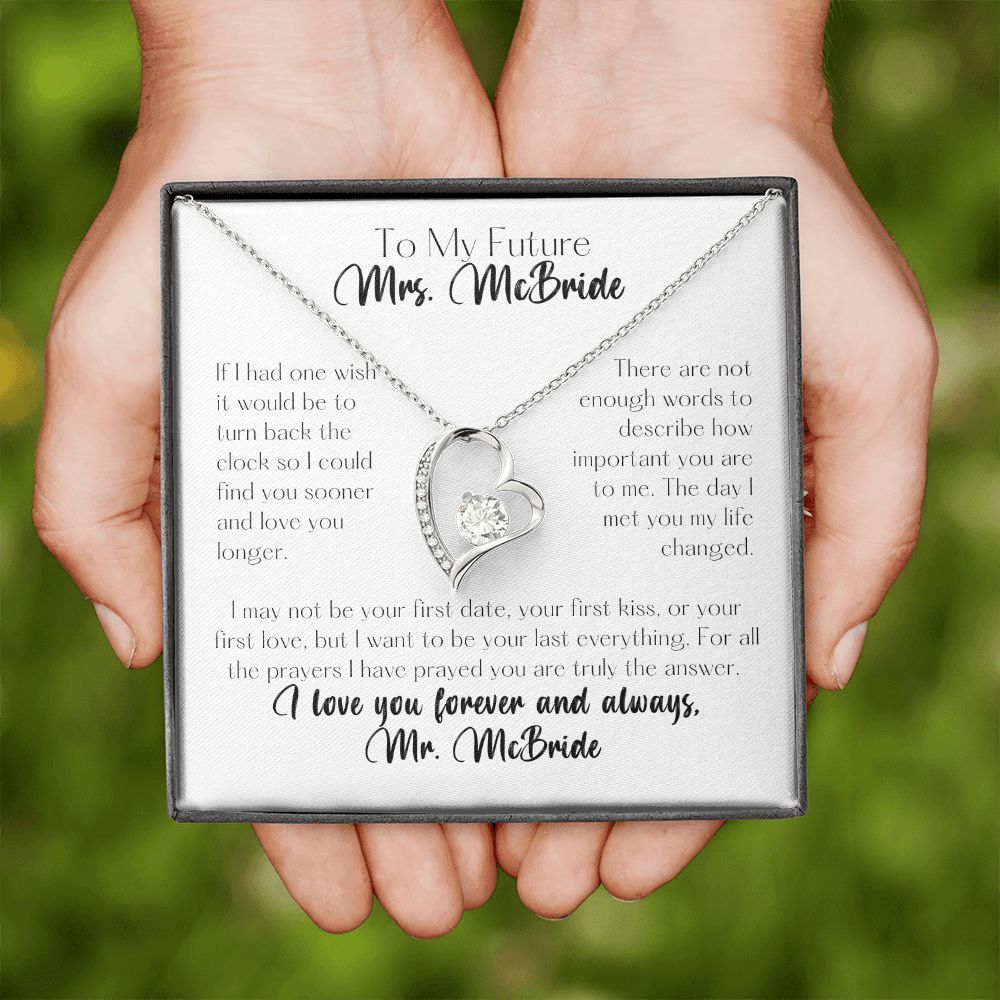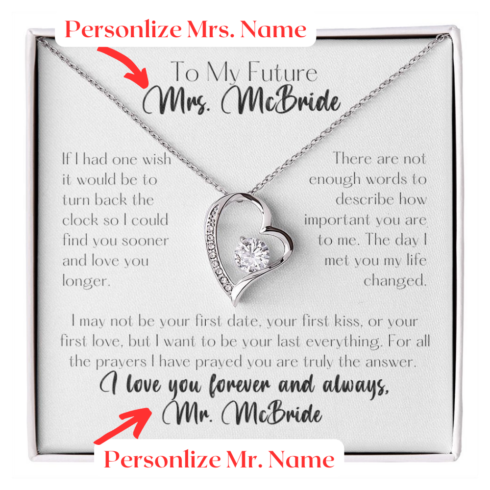 Melt your future wife's heart with this perfectly crafted message expressing your everlasting love and commitment. Personalize the message card with your last name for a cute touch.